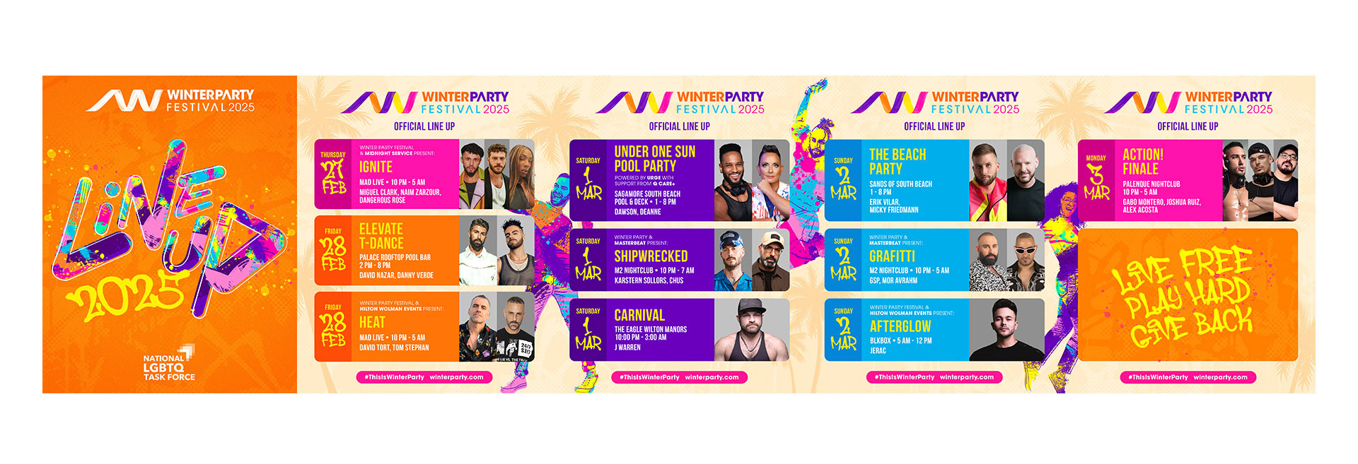 Winter Party Festival is a music and dance event that takes place every winter in Miami Beach, celebrating LGBTQ+ pride, freedom and community.