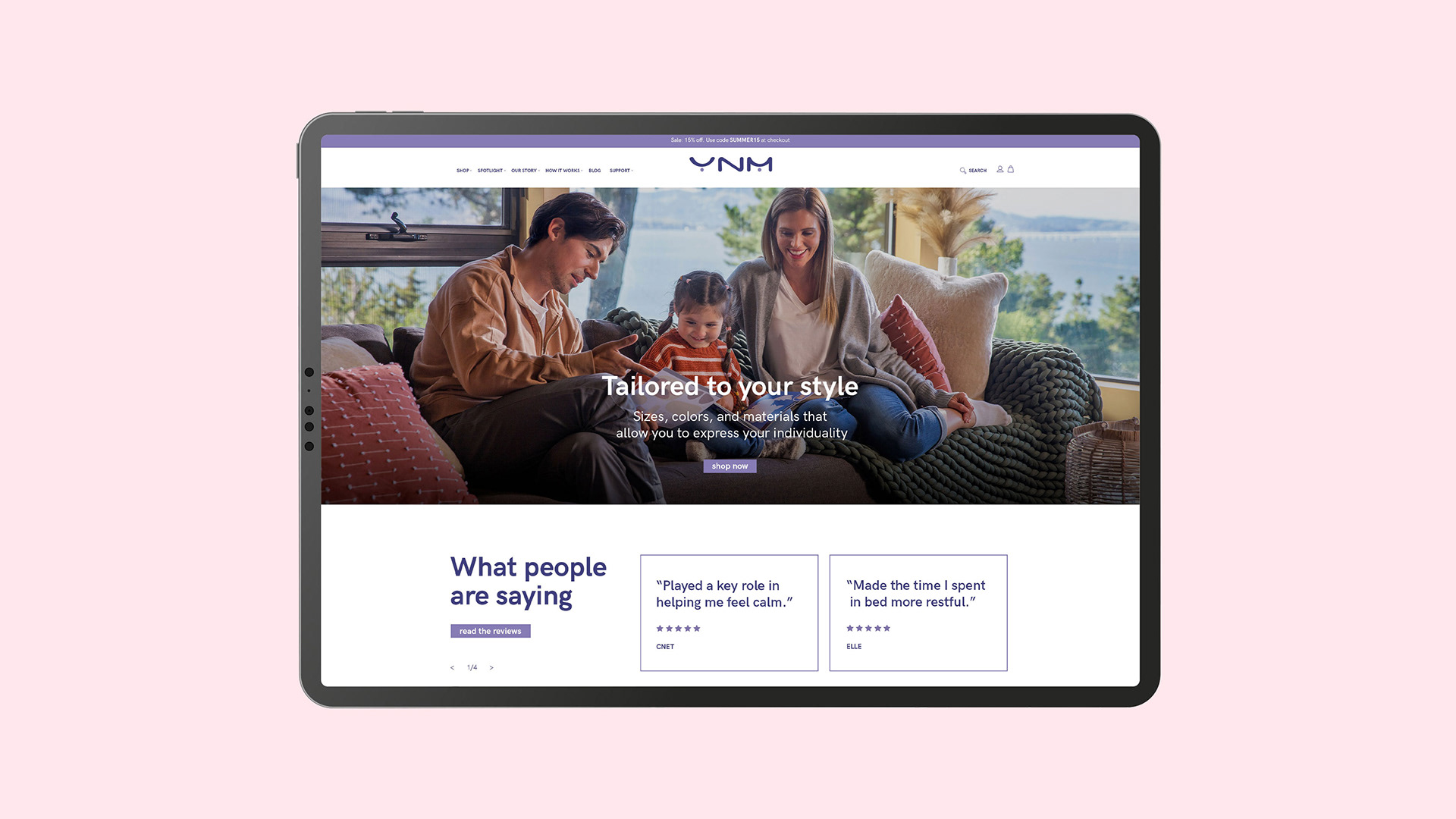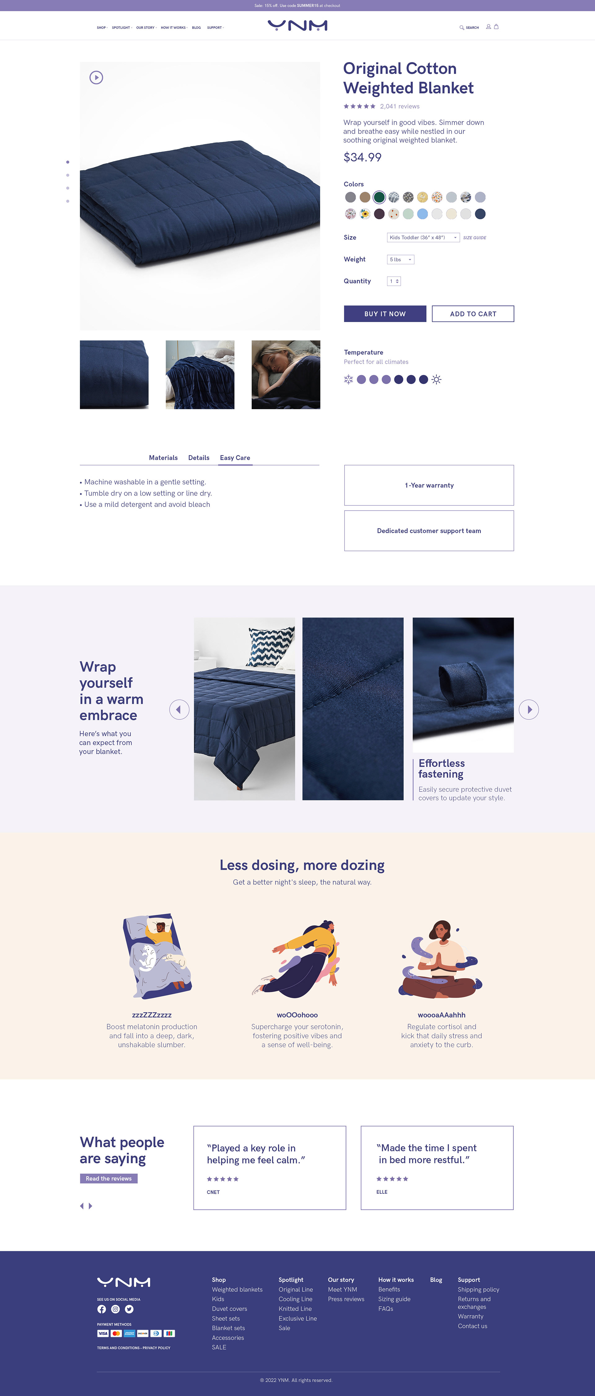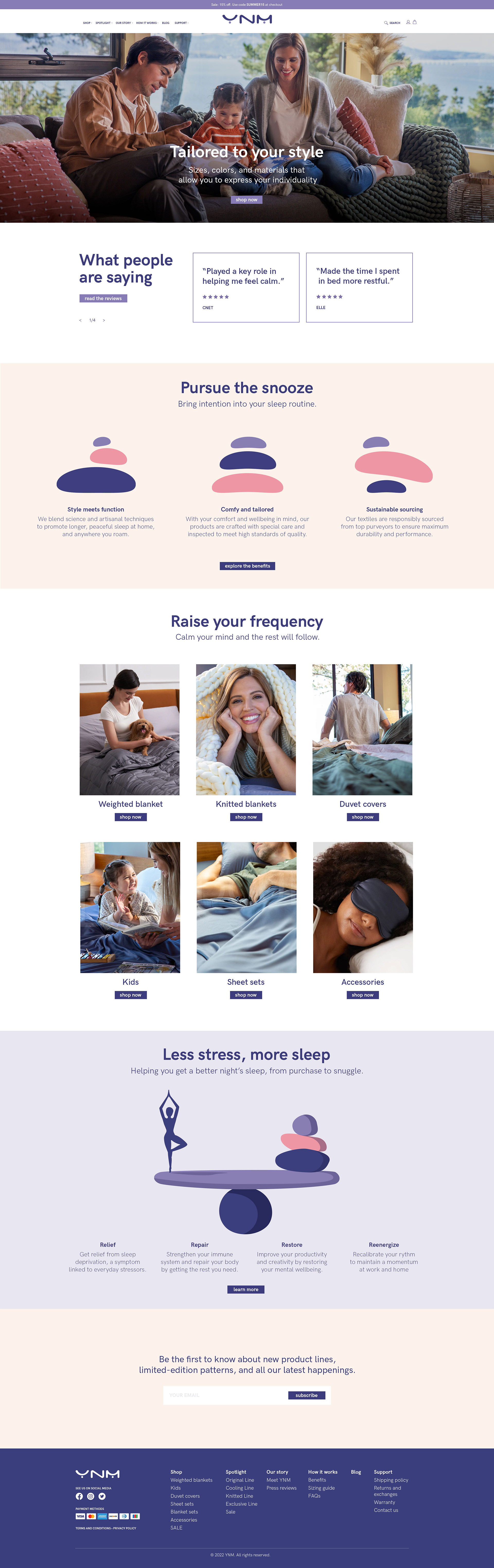The YNM Home e-commerce experience was designed to highlight the brand’s premium weighted blankets and home products with a clean, modern aesthetic.